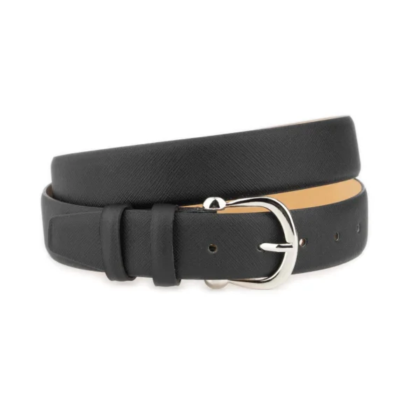 Saffiano Leather Ladies Belt Black With Silver Horseshoe Buckle