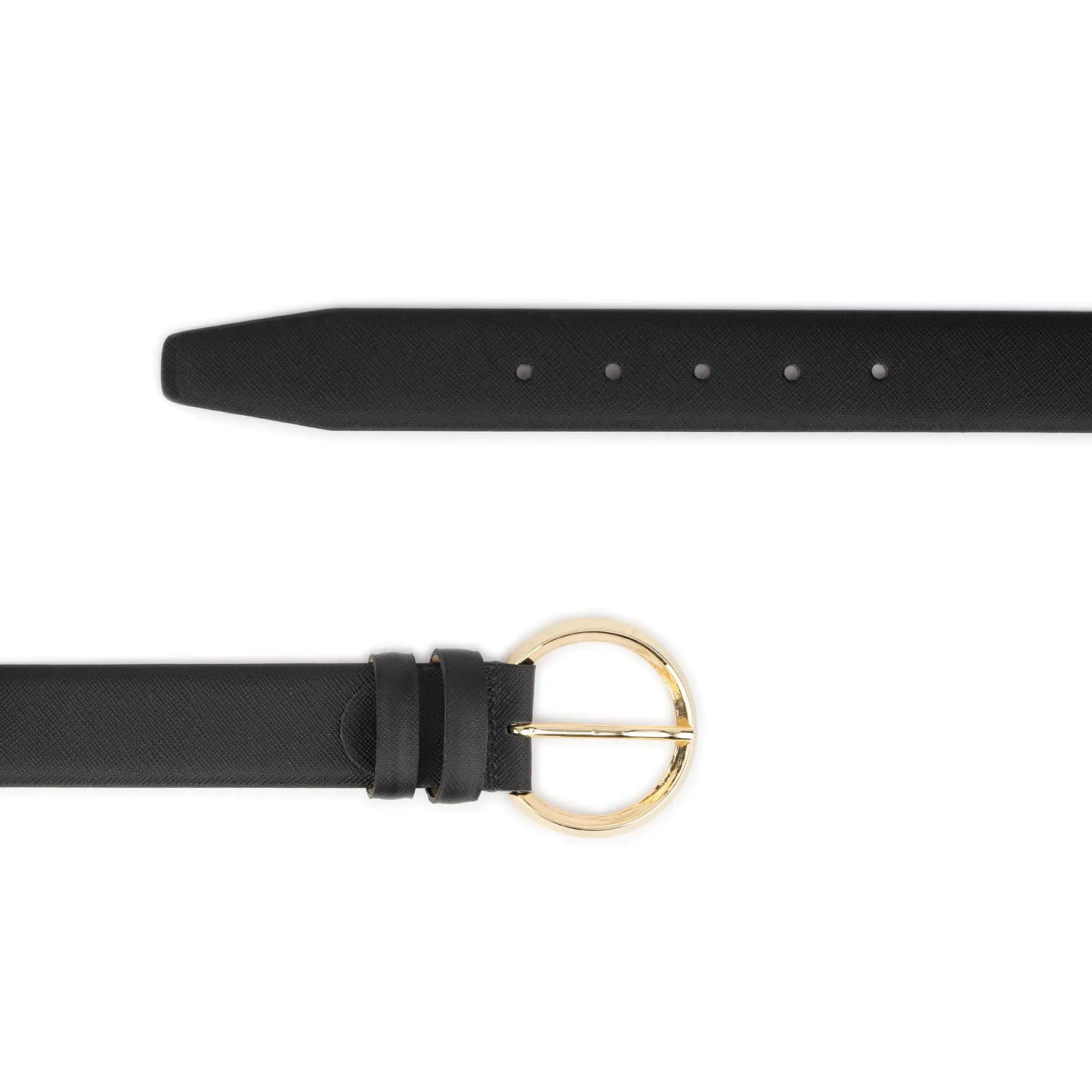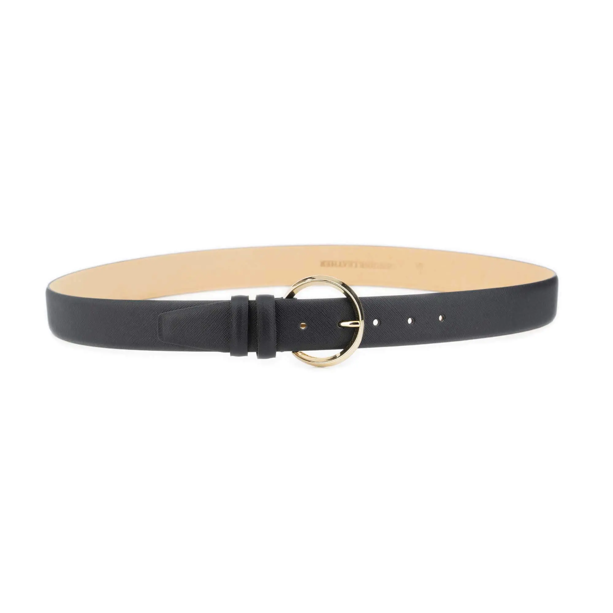 Order your Black Saffiano Belt For Women with Round Gold Buckle today and elevate every outfit you own.