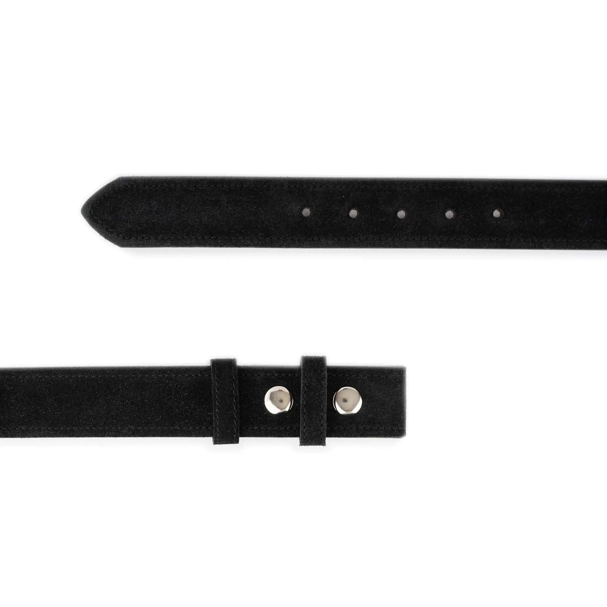 Buy Black Suede Mens Belt With Metal Snaps For Changeable Buckle at LeatherBeltsOnline.com – 1 1/2″ (4.0 cm) wide – Black color – Genuine leather – No buckle – Model code SNAP-40-SUED-BLACK