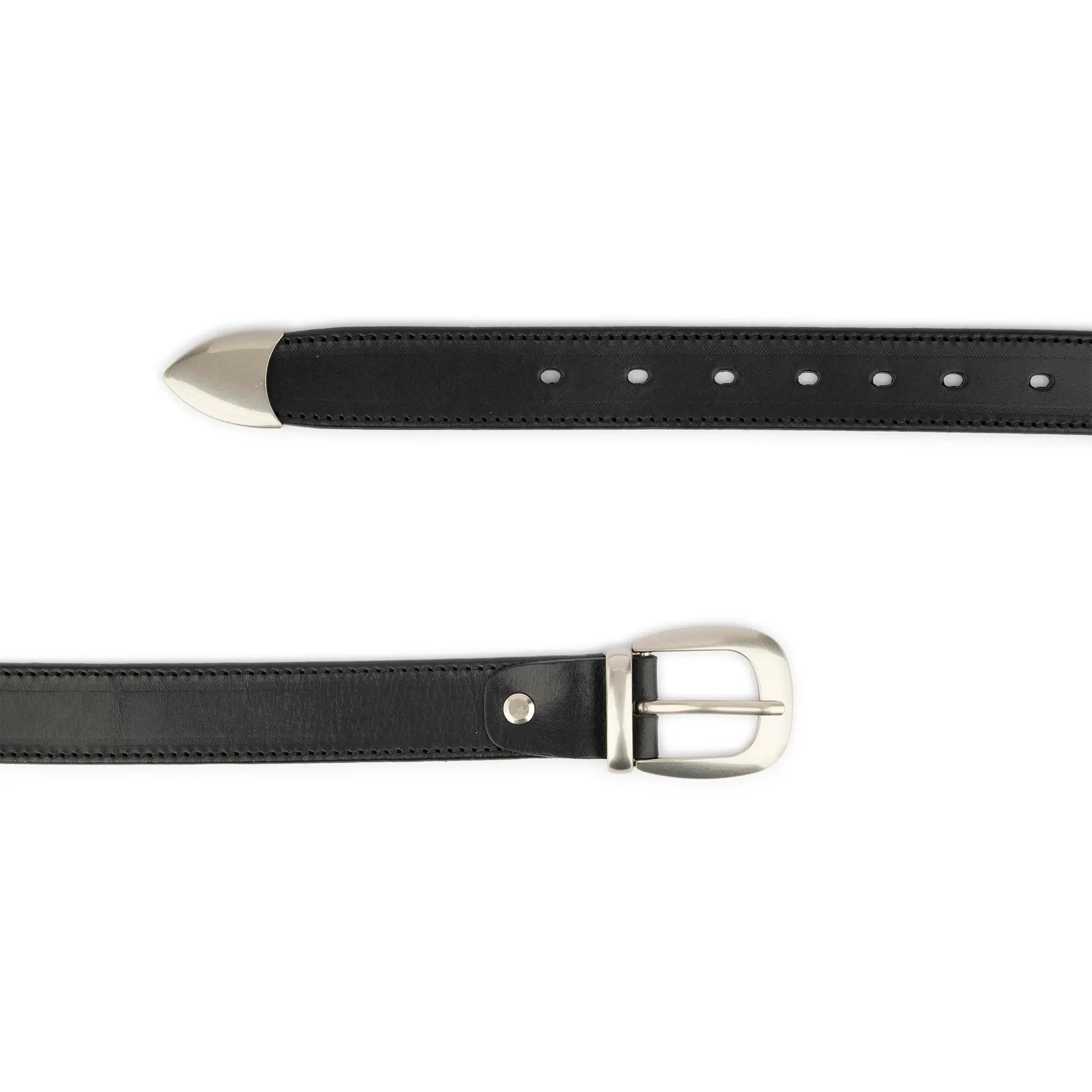 Buy Black Western Belt – Full Grain Stitched Leather With Silver Buckle at LeatherBeltsOnline.com