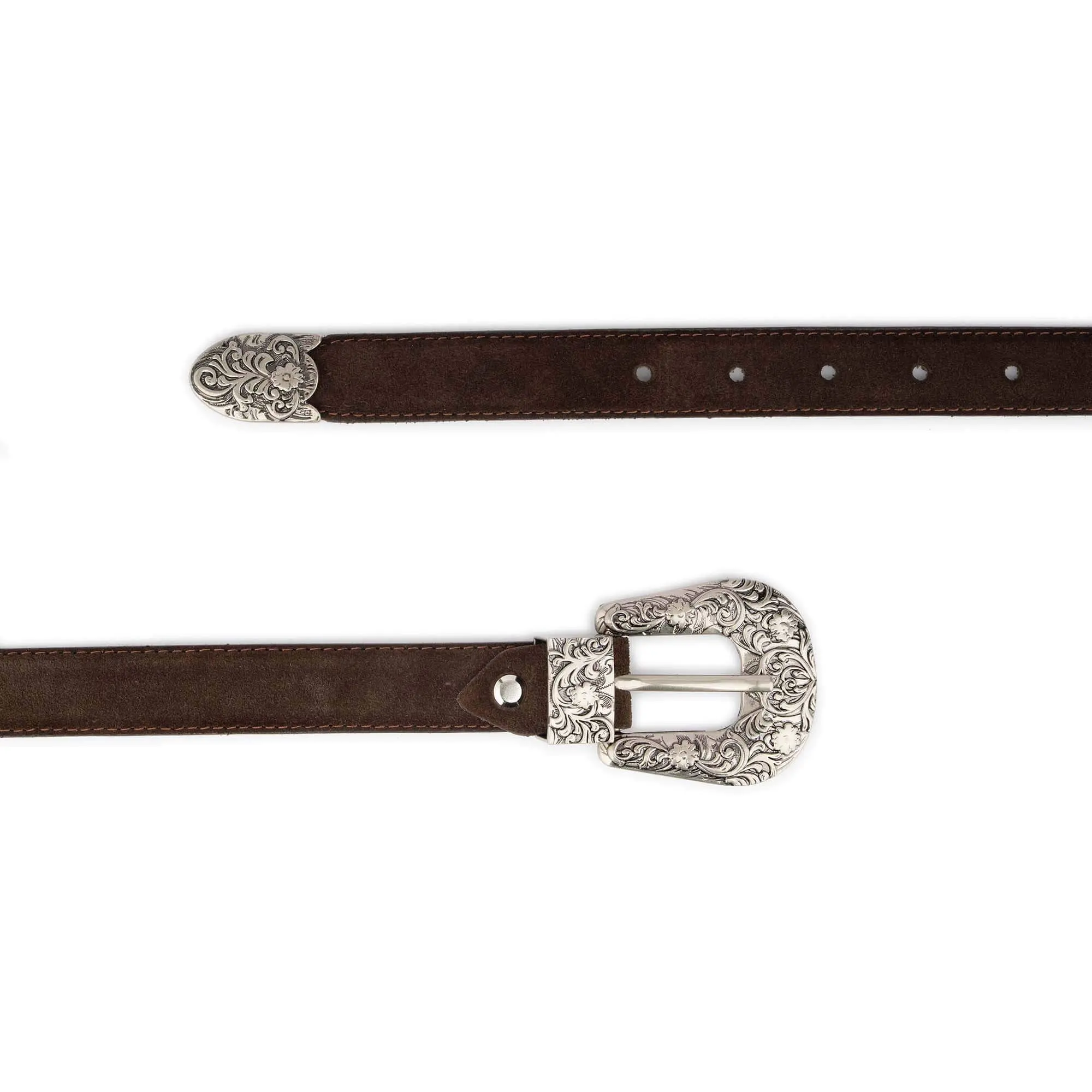 Brown Suede Southwestern Belt – Engraved Silver Buckle effortlessly transforms any casual outfit into a statement of western elegance. This accessory is not just a utility item; it is a fashion-forward piece designed for women who appreciate the rugged yet refined aesthetic of Americana style. The deep, rich tones of the dark brown suede provide a luxurious texture that feels soft to the touch but looks undeniably sturdy.