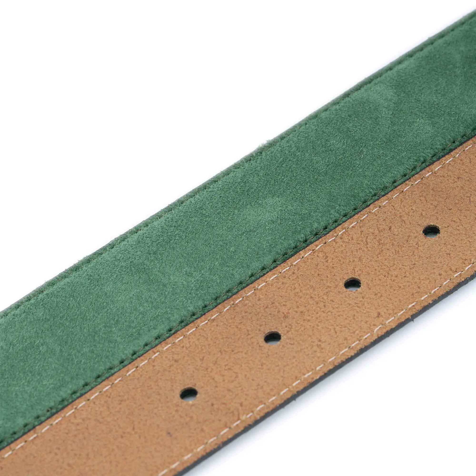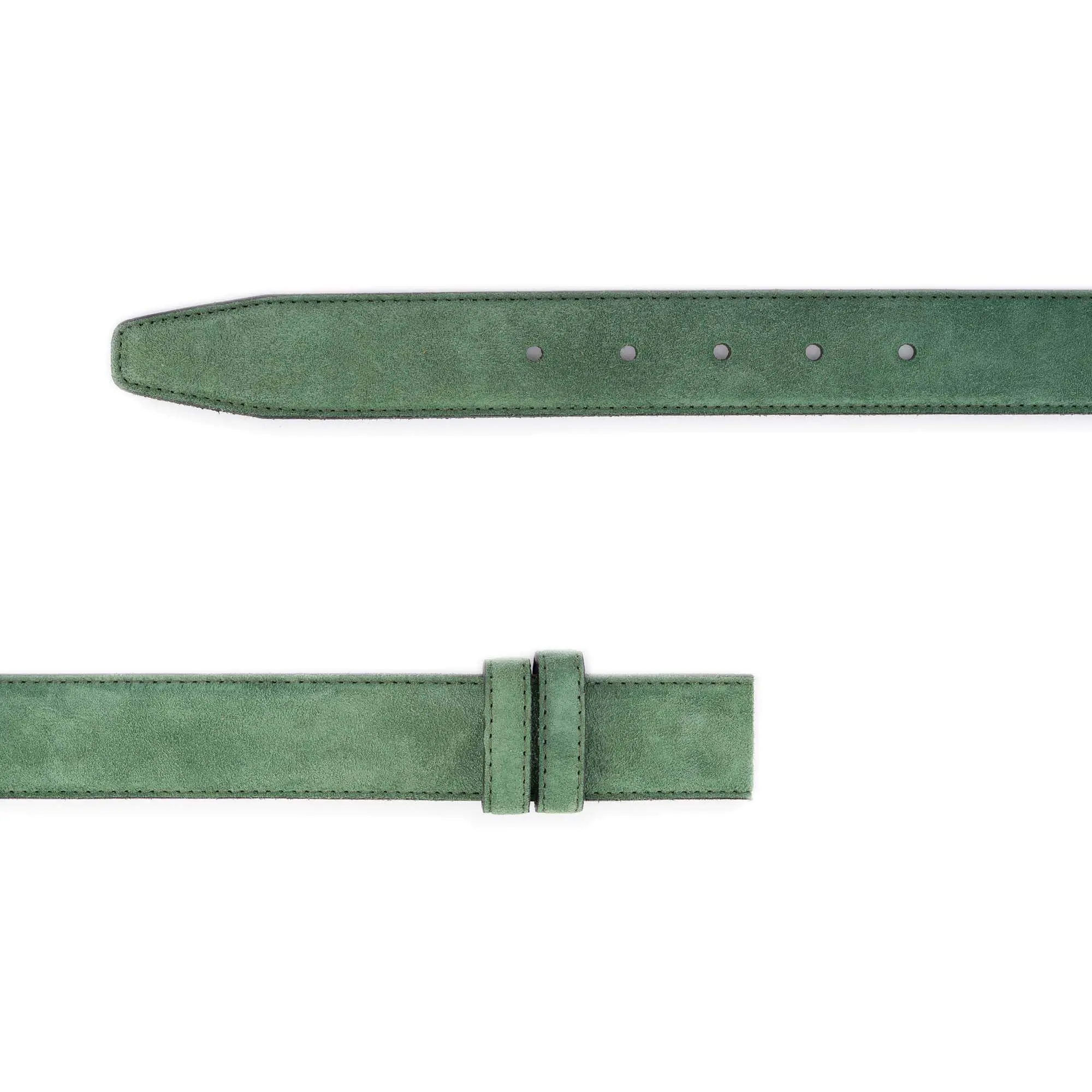 Buy Green Suede Leather Strap For Belts Adjustable at LeatherBeltsOnline.com – 1 3/8″ (3.5 cm) wide – Green color – Genuine leather – No buckle – Without hole – Model code GREEN-35-SUED-CUT-KASV