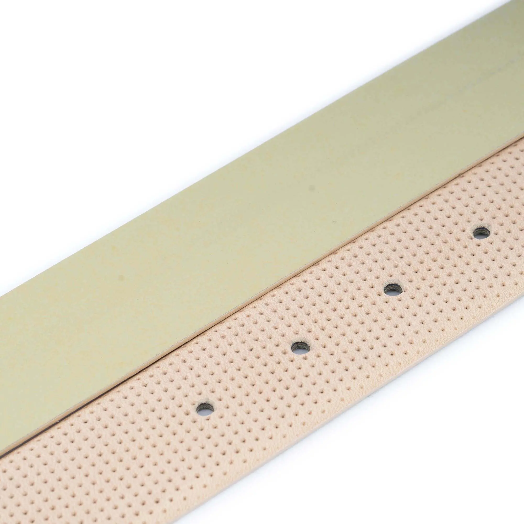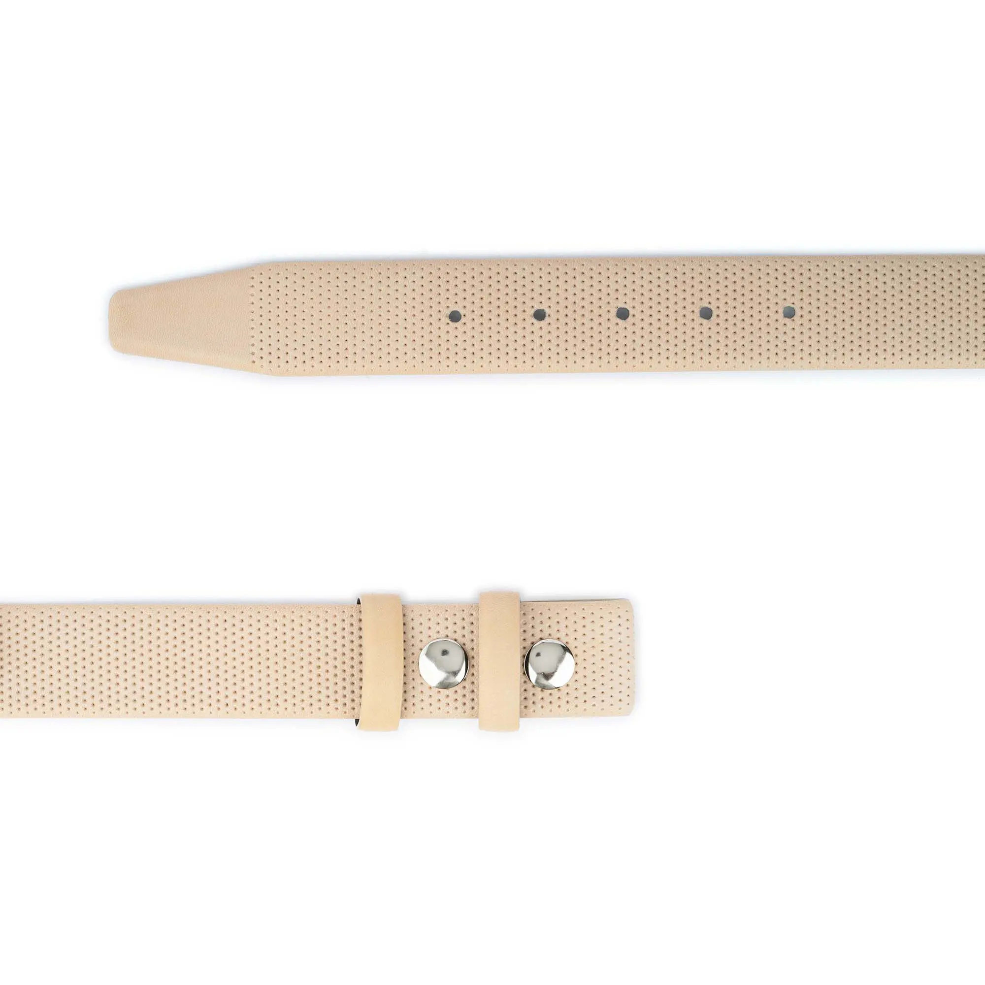 Buy Light Beige Cream Snap Belt Perforated Leather at LeatherBeltsOnline.com – 1 3/8″ (3.5 cm) wide – Light Beige Cream color – Genuine leather – No buckle – Model code SNAP-35-LIBEIG-TREN