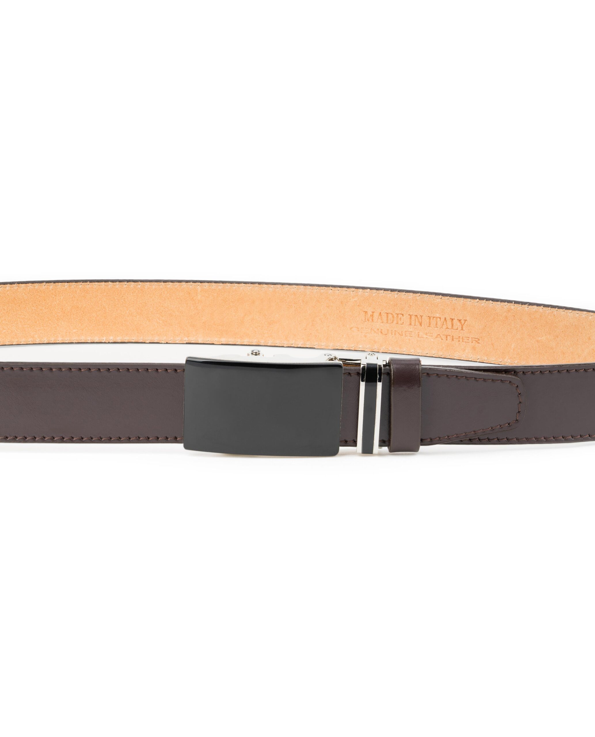 Men’s Brown Ratchet Belt is the top quality item produced by the Italian brand Capo Pelle. The accessory is made of genuine Italian leather and is 35 mm (or 1 3/8″) wide.