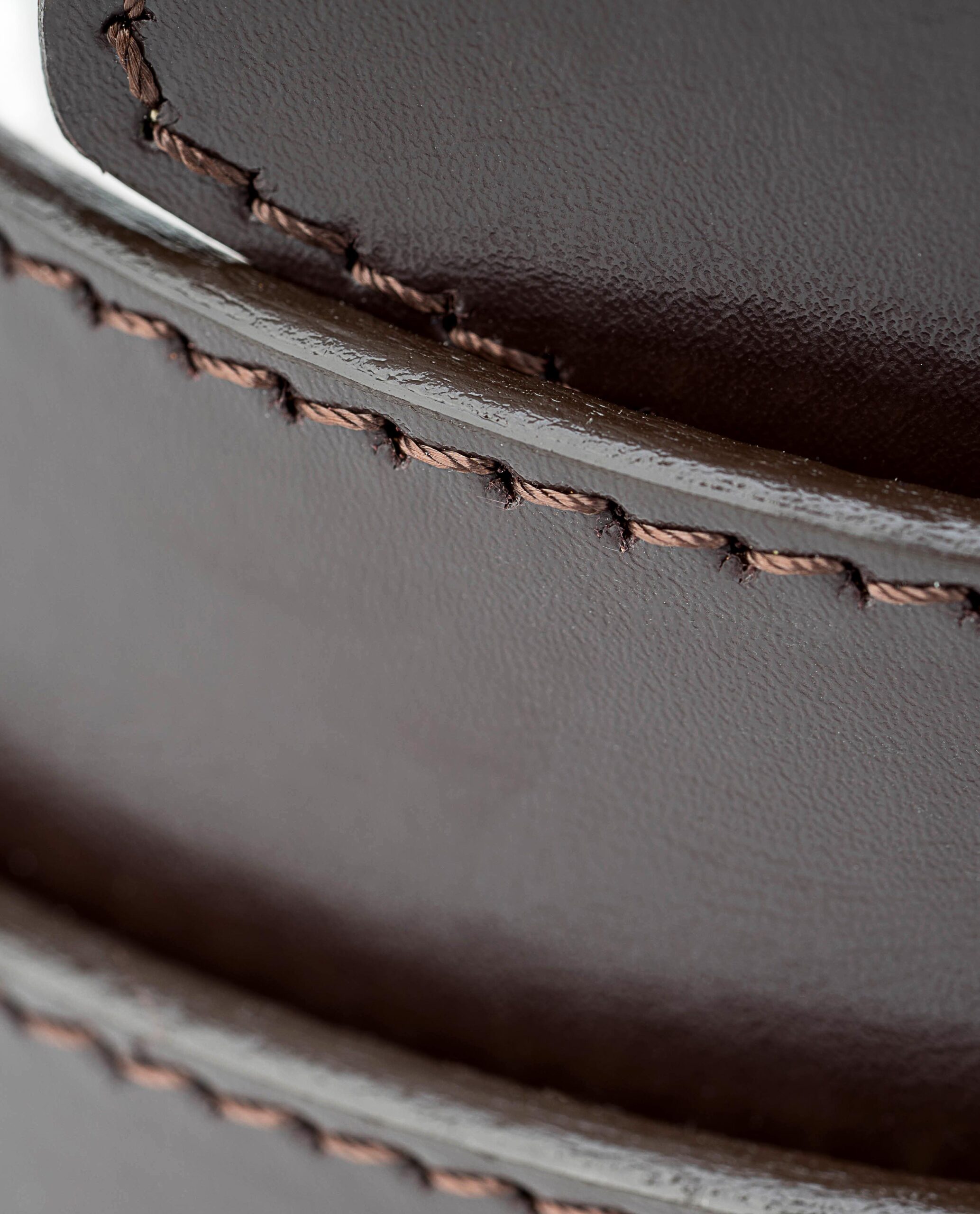 The buckle has a simple, rectangular shape and glance, shiny black surface – together with the rich brown color and perfectly stitched edges, this belt will be an important part of a trendy wardrobe.
