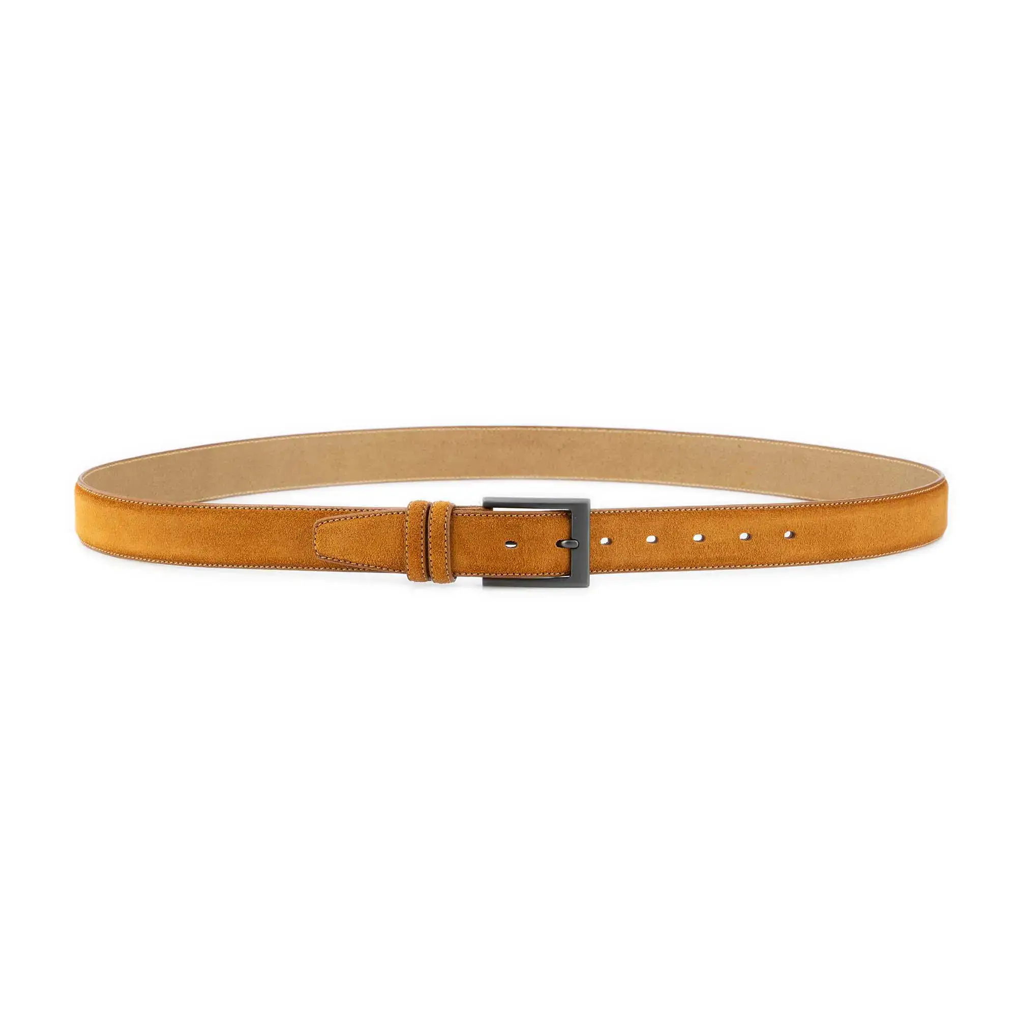 Buy Mens Camel Suede Belt With Gray Satin Metal Buckle at LeatherBeltsOnline.com