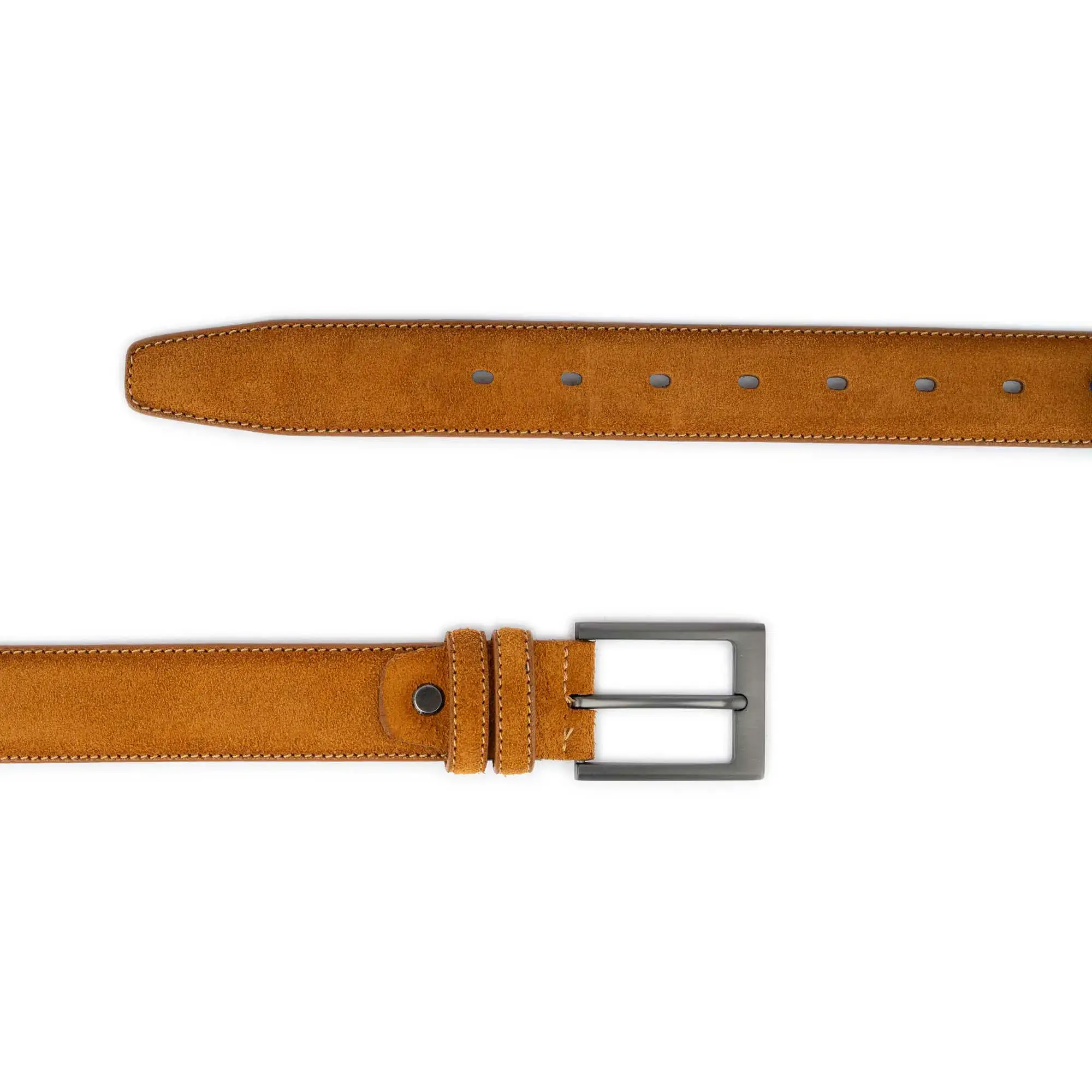 – 1 3/8″ | 3.5 cm wide – Camel color belt – Genuine suede leather – Gray color buckle – Model code CAMLSU-108