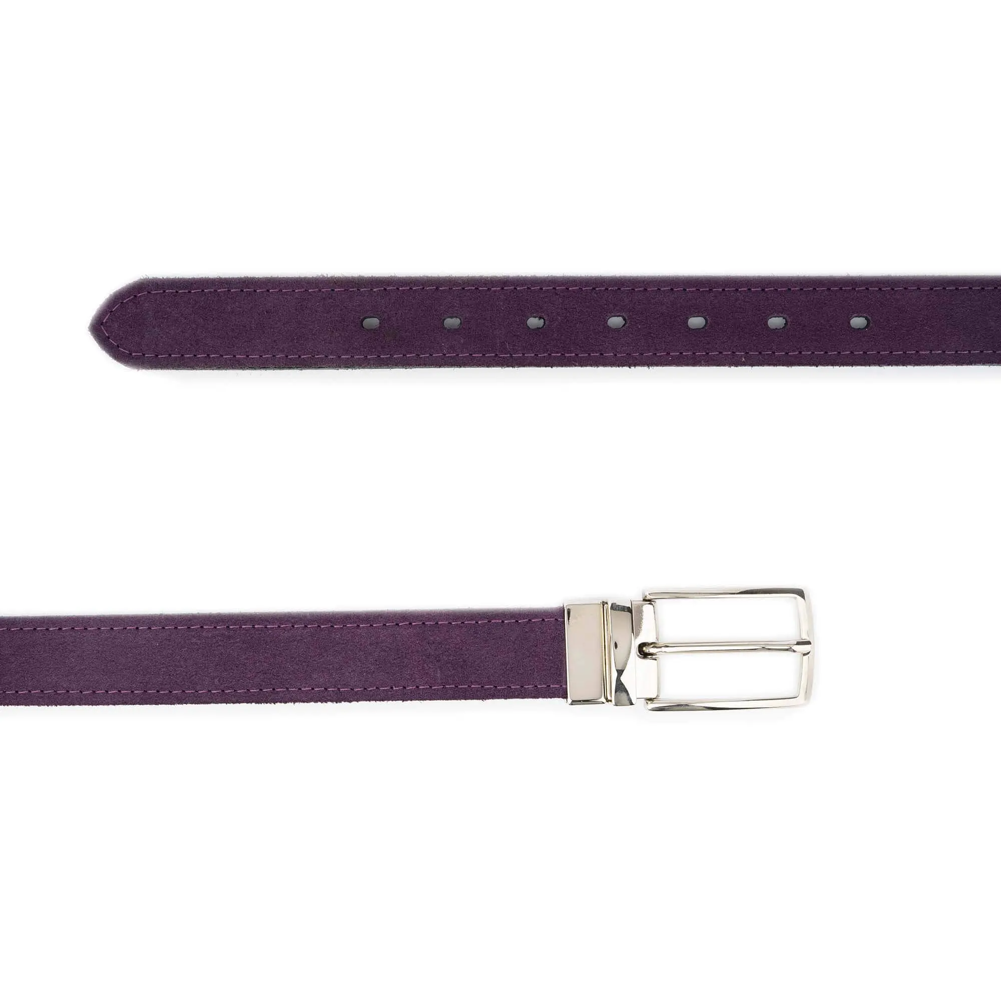 Buy Mens Reversible Leather Belt Purple Suede Black Leather at LeatherBeltsOnline.com – 1 1/8″ (3.0 cm) wide – Purple reversible to Black Color – Silver color buckle – Genuine suede leather – Model code 30-VEL6339-PUL2680-MAG12055