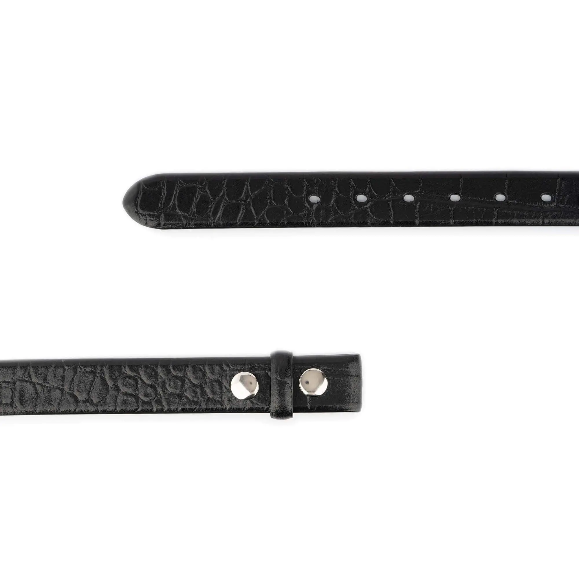 Buy Mens Snap Belt For Buckles Black Croco Emboss Leather 1 1/8 Inch at LeatherBeltsOnline.com – 1 1/8″ (3.0 cm) wide – Black color – Genuine leather – No buckle – Model code SNAP-30-CROCEMB-BLACK