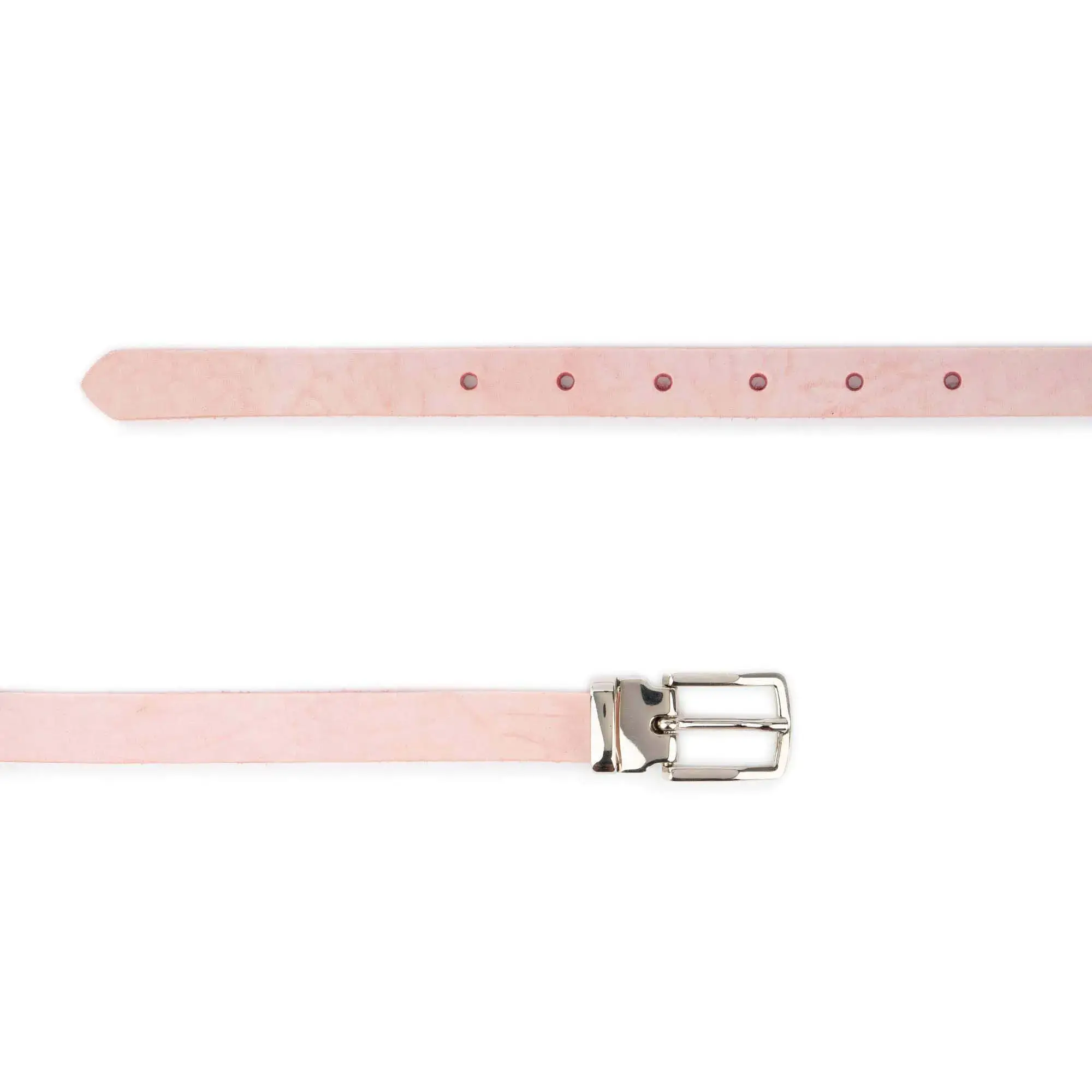 Buy Pale Pink Thin Leather Belt Silver Rectangle Buckle at LeatherBeltsOnline.com – 3/4″ (2.0 cm) wide – Pale Pink color – Silver color buckle – Genuine leather – Model code SIEN-CARL-20-ROSA-BLT-SILREC