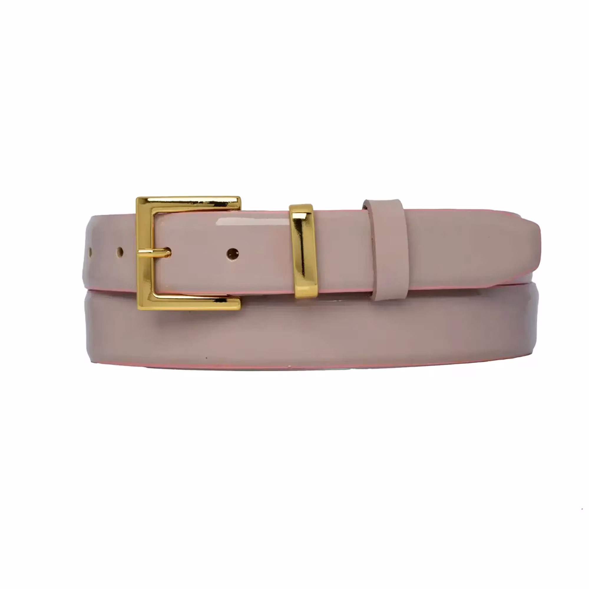 Buy Powder Pink Patent Leather Belt – Square Gold Buckle at LeatherBeltsOnline.com – 1 1/8″ (3.0 cm) wide – Powder Pink Color – Gold color buckle – Genuine leather – Model code PATE-PWPINK-30-SQGOL-GODER