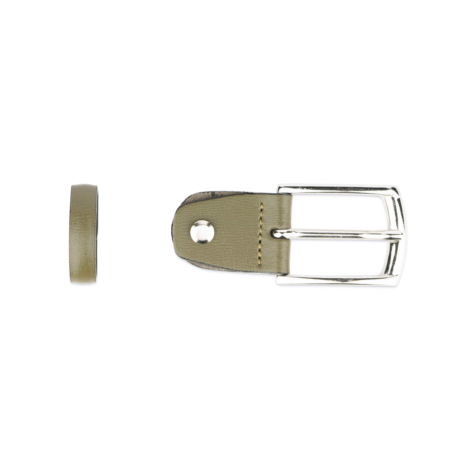 Elevate your accessory game with the confidence that comes from wearing a high-quality, Italian-made product. Experience the perfect fusion of fashion and functionality, exclusively available at LeatherBeltsOnline.com. Elevate your belts with the timeless elegance of olive green leather and silver metal, and infuse a touch of Italian sophistication into your wardrobe with our Replacement Belt Buckle.
