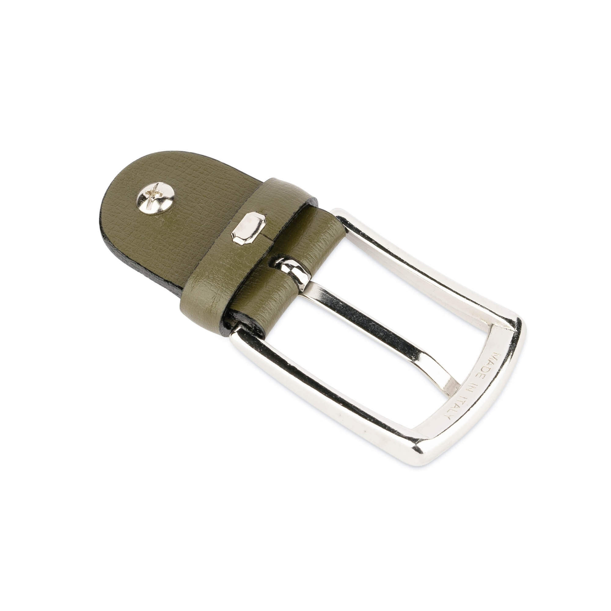 Replacement Belt Buckle in a chic 30 mm Olive Green Silver design, a versatile and stylish accessory crafted to refresh your beloved belts. Meticulously made in Italy, this metal buckle features a genuine olive green leather patch, infusing a touch of luxury and sophistication into your belt collection. Tailored for 30 mm (1 1/8″) belt straps, it seamlessly combines fashion with practicality.
