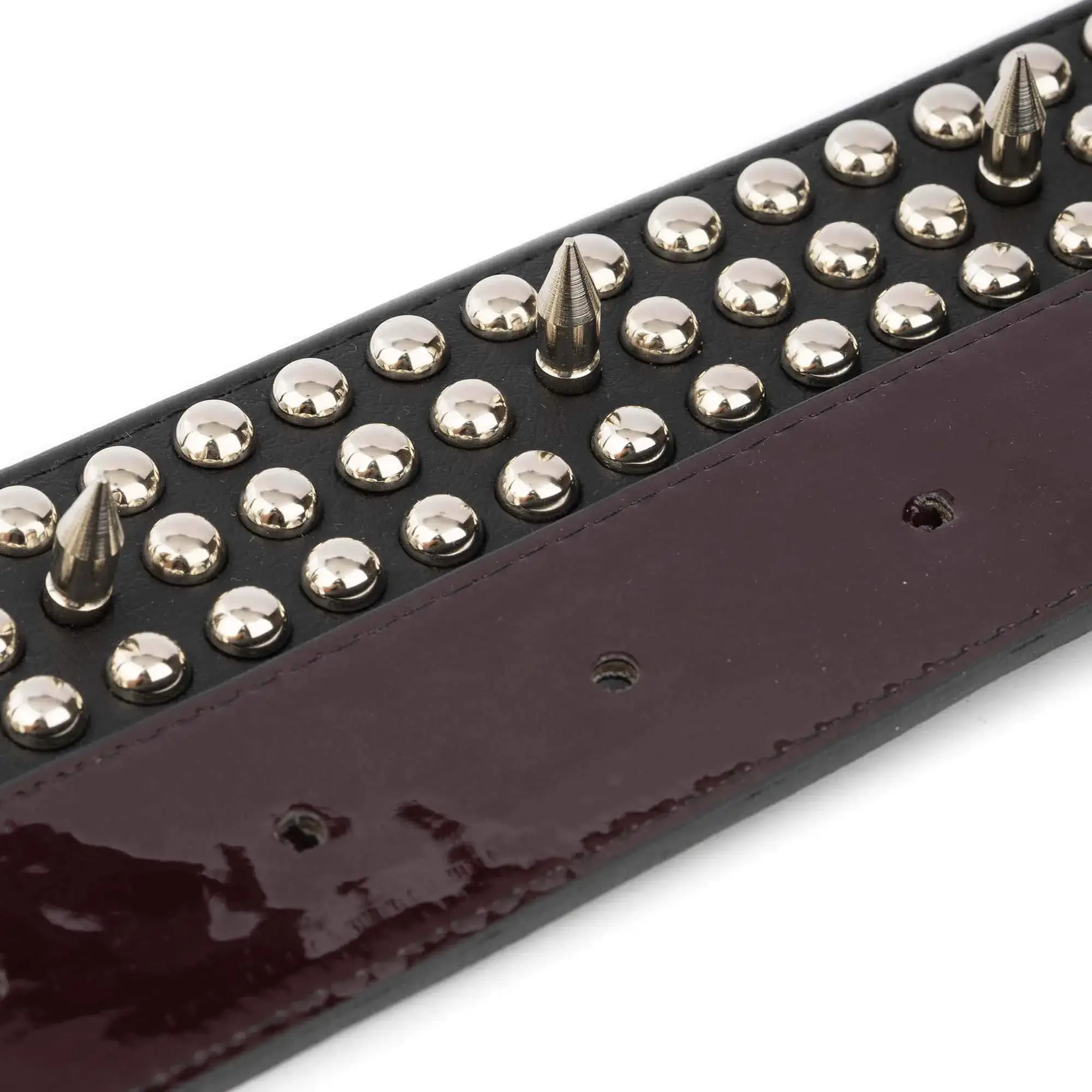 Buy Studded Leather Belt With Silver Spikes Thick Wide at LeatherBeltsOnline.com – 1 3/4″ (4.5 cm) wide – Black color – Silver color buckle – Genuine leather – Model code STUD-45-BLACK-SILROUND-TARG