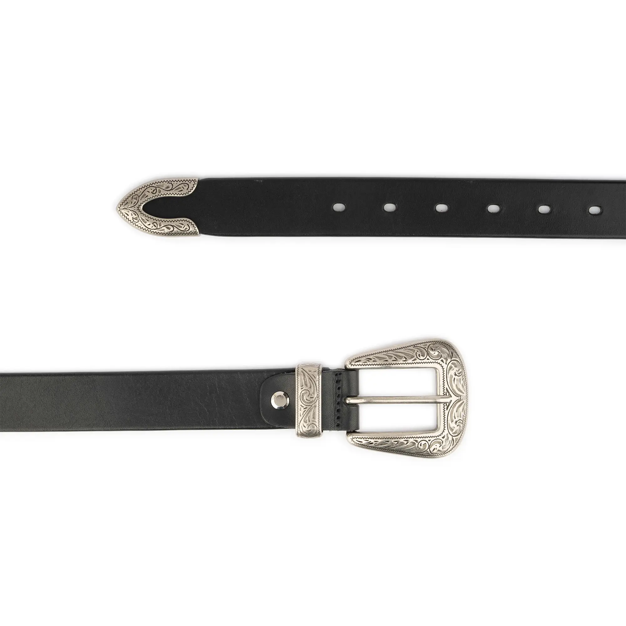 Buy Western Belt With Silver Buckle – Black Full Grain Leather at LeatherBeltsOnline.com