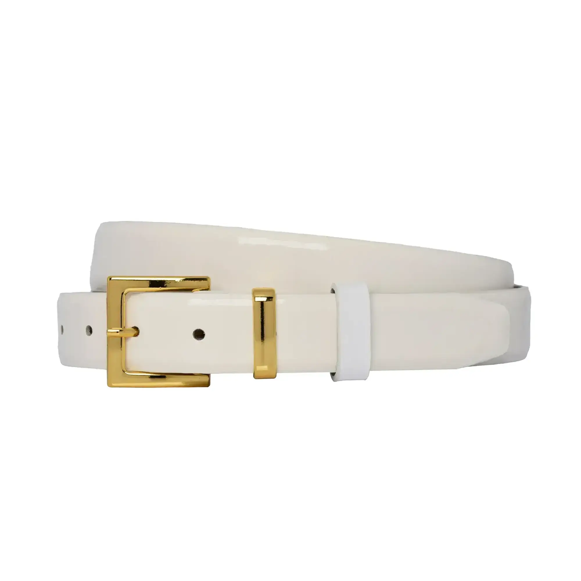 Buy White Patent Leather Belt – Square Gold Buckle at LeatherBeltsOnline.com – 1 1/8″ (3.0 cm) wide – White Color – Gold color buckle – Genuine leather – Model code PATE-WHITE-30-SQGOL-GODER