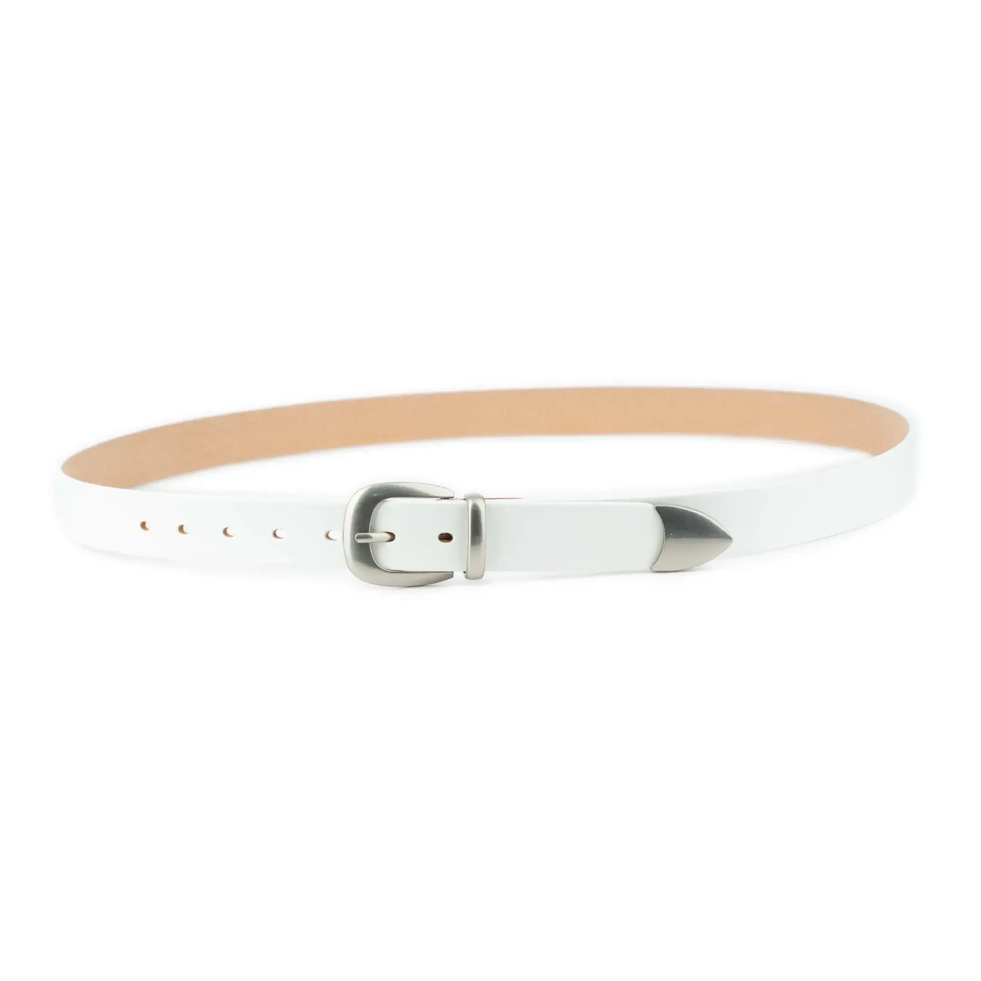 Buy White Western Belt – Real Leather With Silver Buckle at LeatherBeltsOnline.com