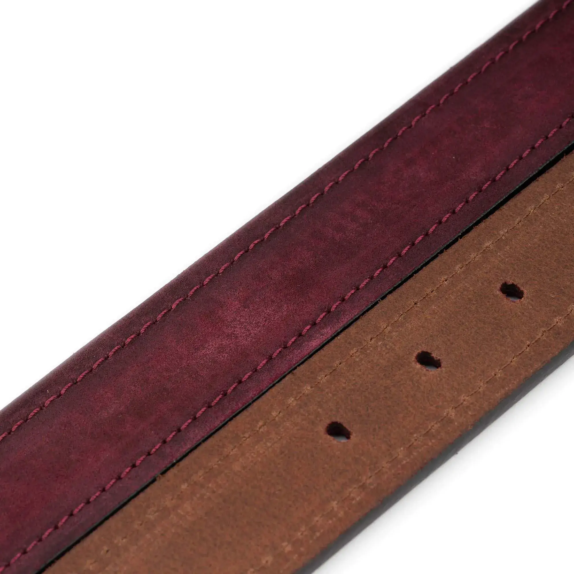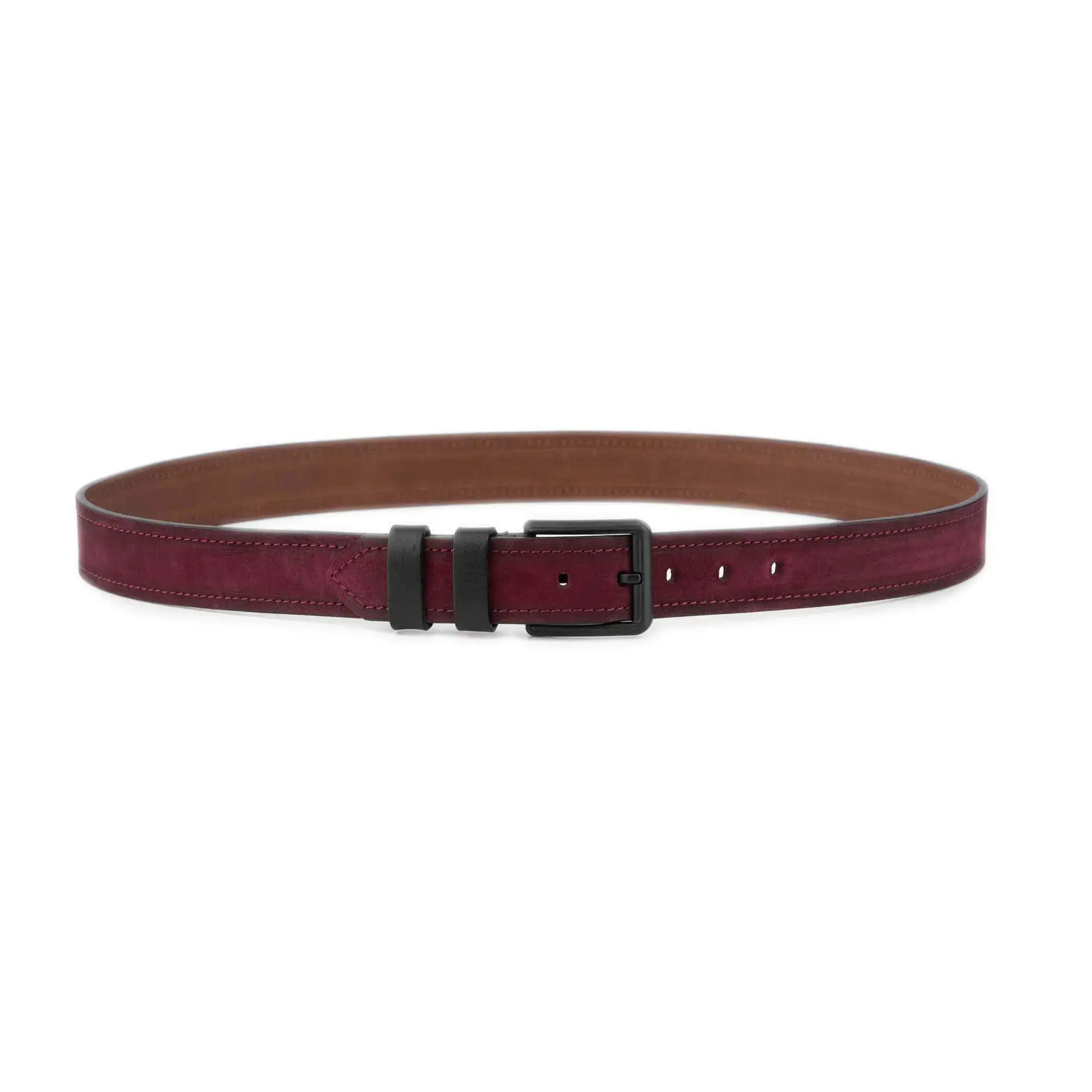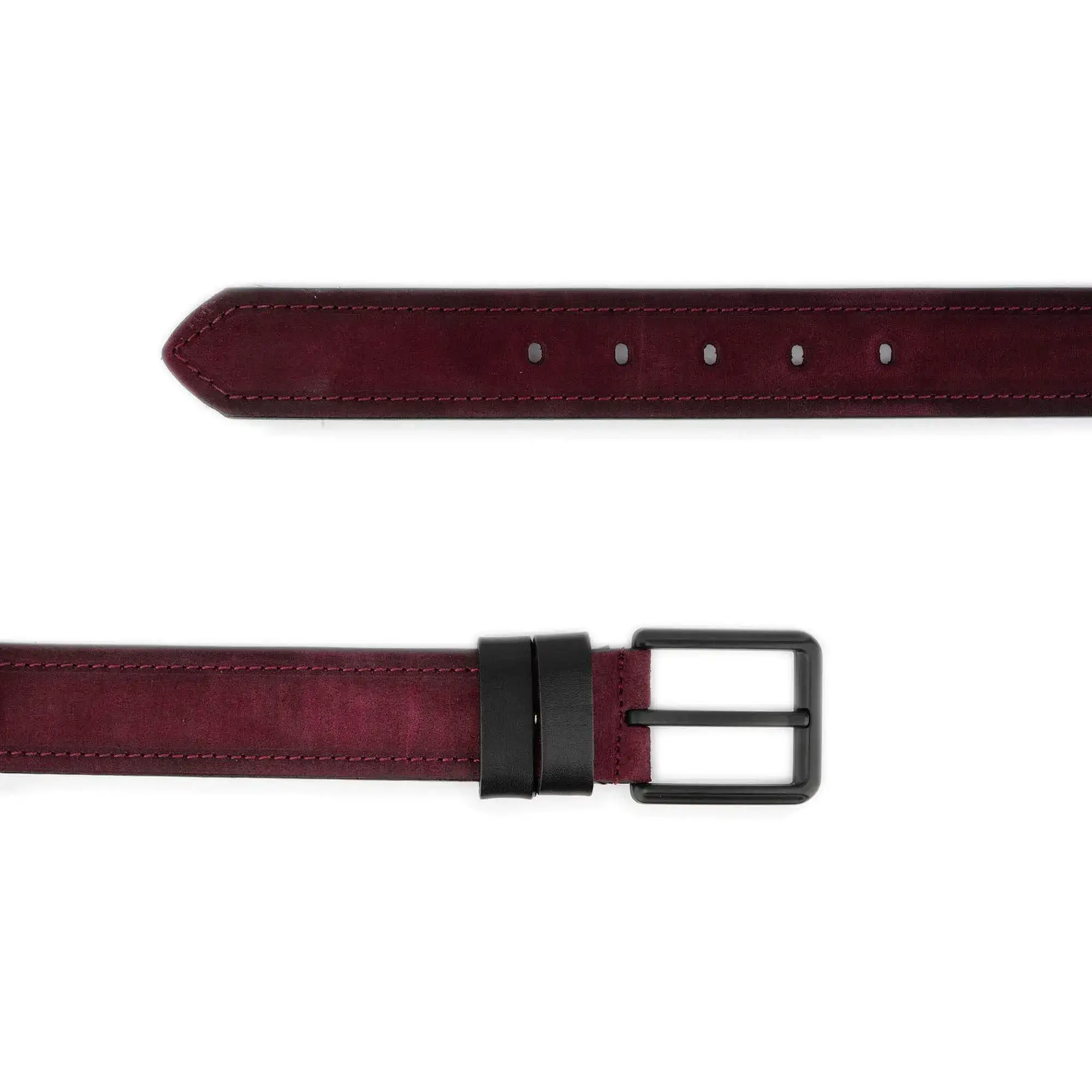 Buy Wide Belt For Denim Burgundy Suede Leather Black Loops at LeatherBeltsOnline.com – 1 1/2″ (4.0 cm) wide – Burgundy color – Black color buckle – Genuine leather – Model code BURGSUED-40-BLLOOP-KARP