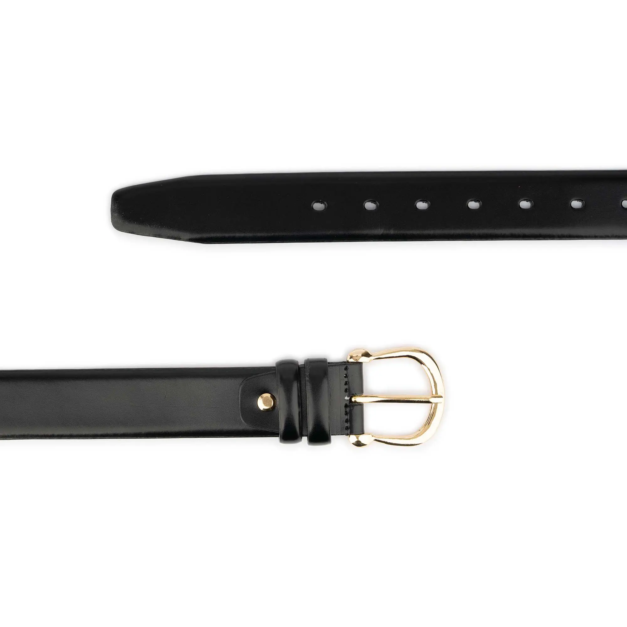 Buy Womens Black Dress Belt With Gold Horseshoe Buckle at LeatherBeltsOnline.com