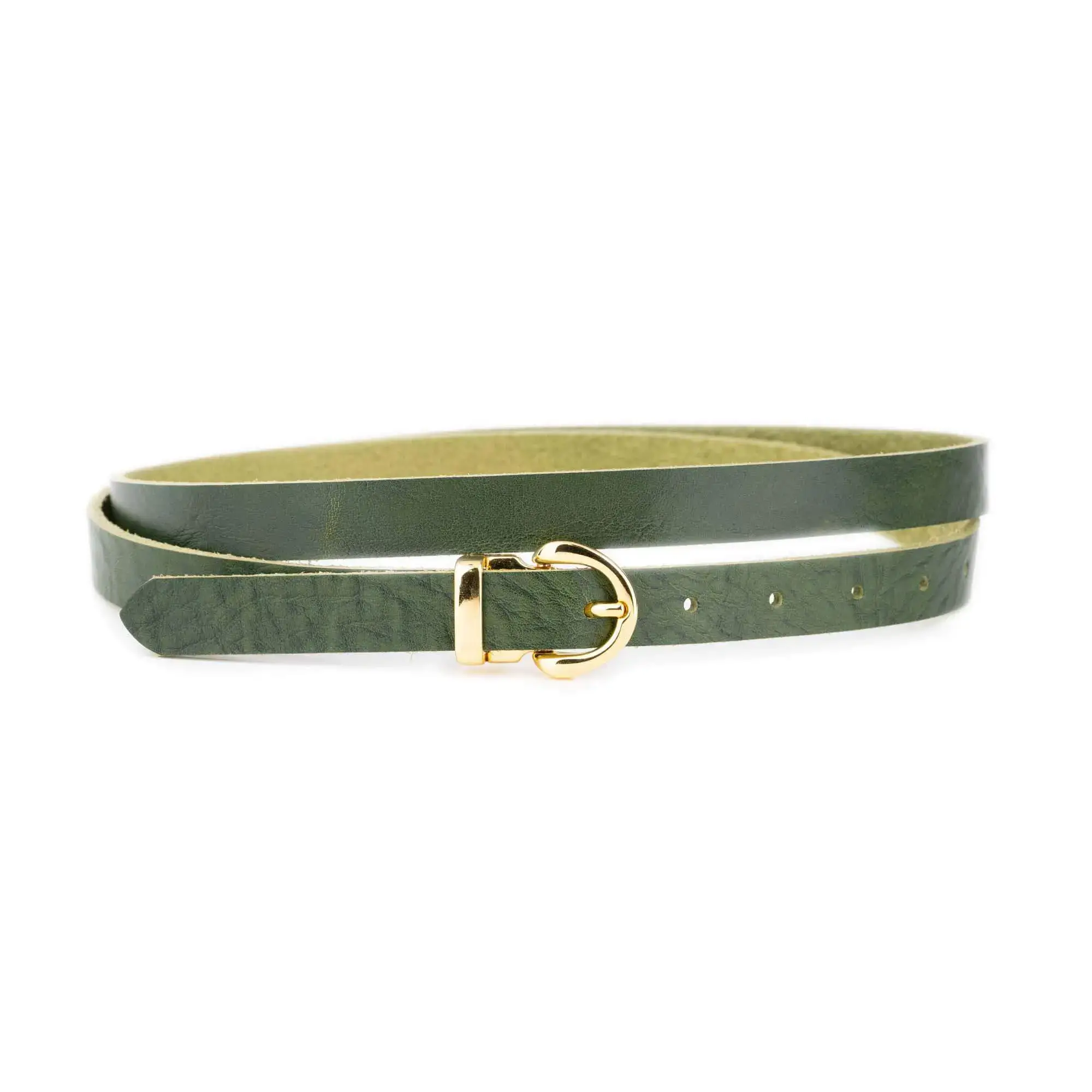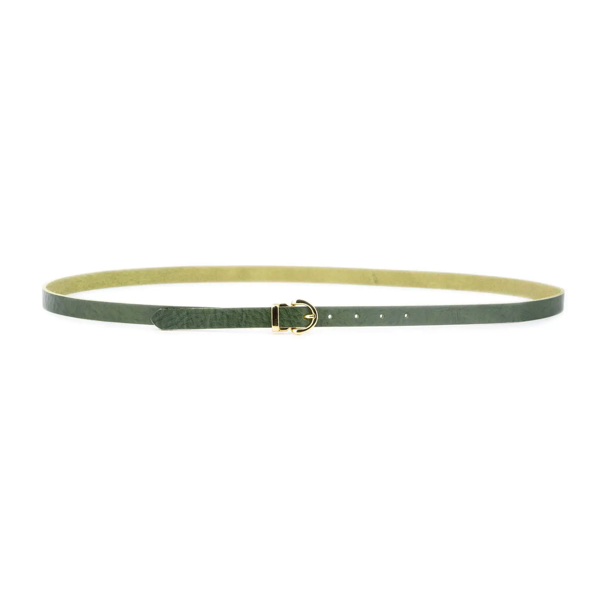 Buy Womens Green Belt For A Dress Gold Buckle at LeatherBeltsOnline.com – 3/4″ (2.0 cm) wide – Green color – Gold color buckle – Genuine leather – Model code HOLL-CARL-20-PINO-BLT-GOLROU